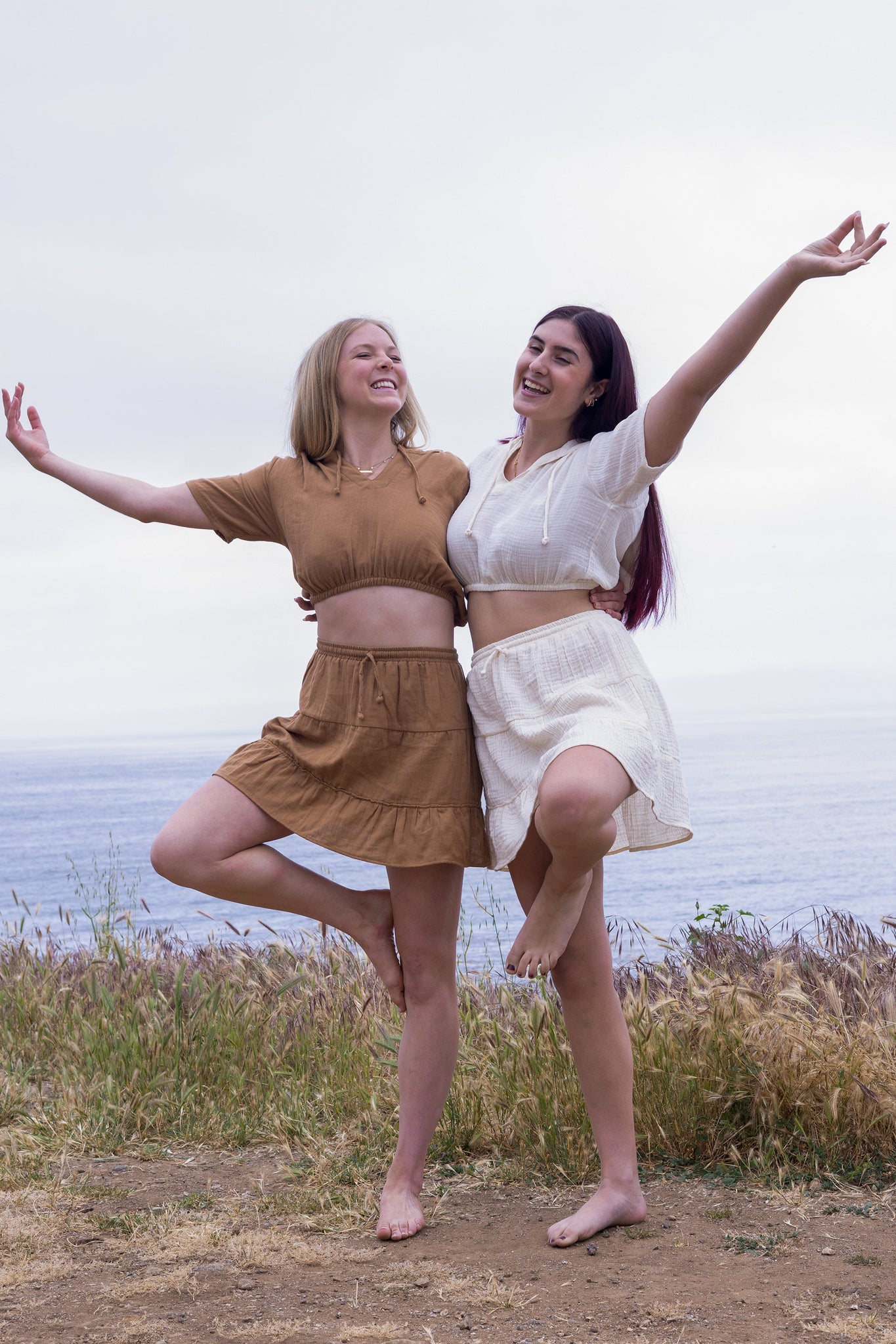 The Bloom Mini skirt, made from 100% natural cotton gauze, is perfect for spring and summer. It inspires youthful play and warm-weather adventures. Ideal for beach days, picnics and more, it will keep you twirling and dancing in the sun all season long!